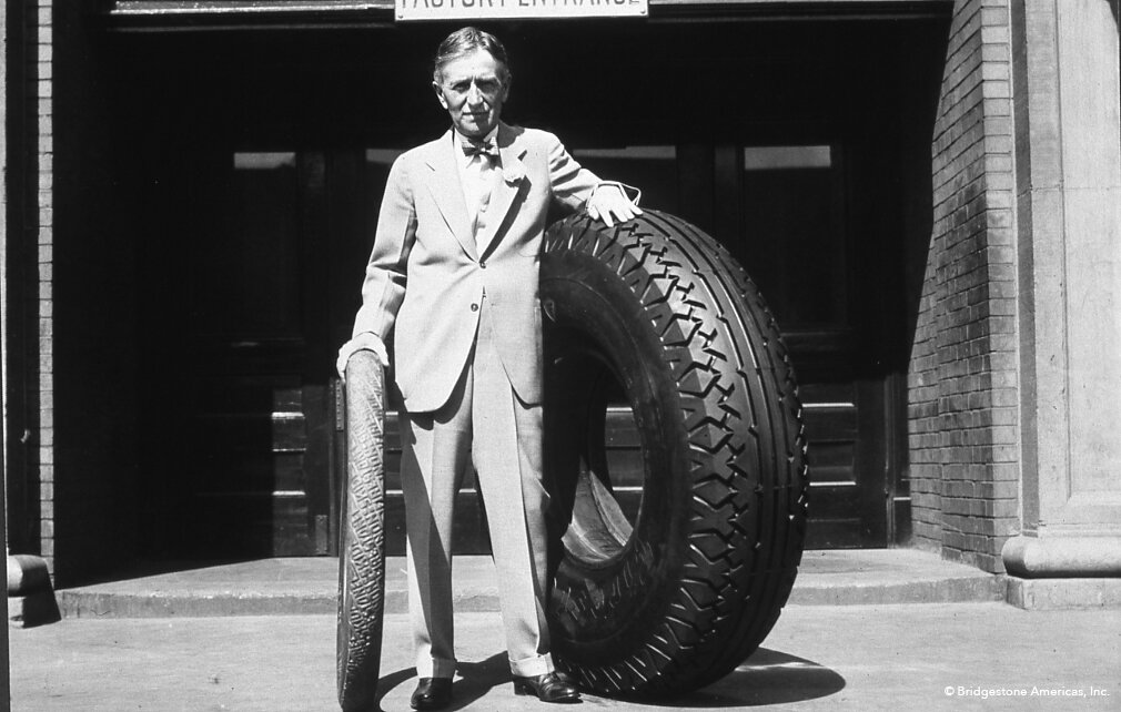 創業者 ハーベイ・ファイアストンが、1900年8月3日にアメリカ・オハイオ州でファイアストン・タイヤ・アンド・ラバー・カンパニーを設立。ハーベイは当時、今後自動車が広く普及することを予見し、それに不可欠なタイヤの需要も大きく伸びることを見据え、タイヤ製造に事業の軸足を置きました。その後は北米における自動車タイヤ最大のサプライヤーとなり、世界各国に工場と販売店網を構えるグローバル企業となりました。ブリヂストンが1988年にファイアストン社を買収した以降も、伝統あるファイアストンブランドとして、商品・サービスを展開しています。