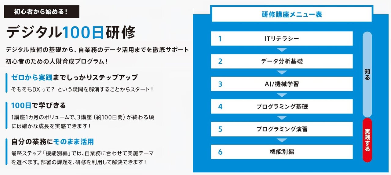 古山さん まずは初心者の方向けの「デジタル100日研修」の受講をお勧めします。もちろん研修を受けるためには一時的に時間を割く必要がありますが、その負担を補って余りあるほどの実りがあると思っています。もしも意欲のある方がチームにいるようでしたら、マネージャーの方も、そのチャレンジを後押ししてあげてほしいと思います。間違いなく、未来への良い投資になるはずです。