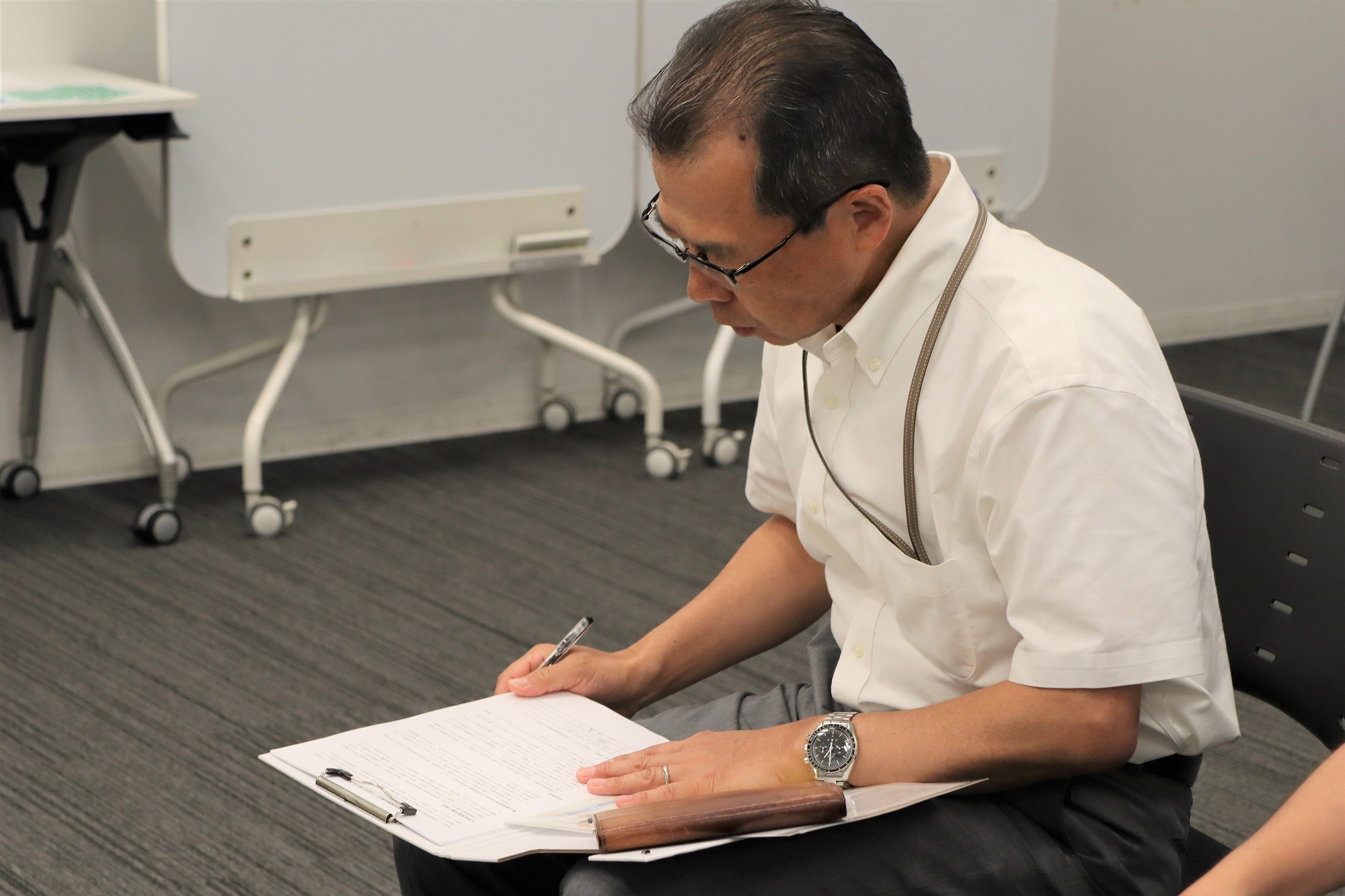(株)ブリヂストン 代表執行役 副社長の森田さんも忙しいスケジュールの合間を縫って参加してくれたんだ。志田さんと同じく、表情にはあまり出ていなかったんだけど、箸を持ちながら「こんな状態で仕事をしなければならないとは…大変だね」と、痛みのせいか小声で感想を教えてくれたよ。