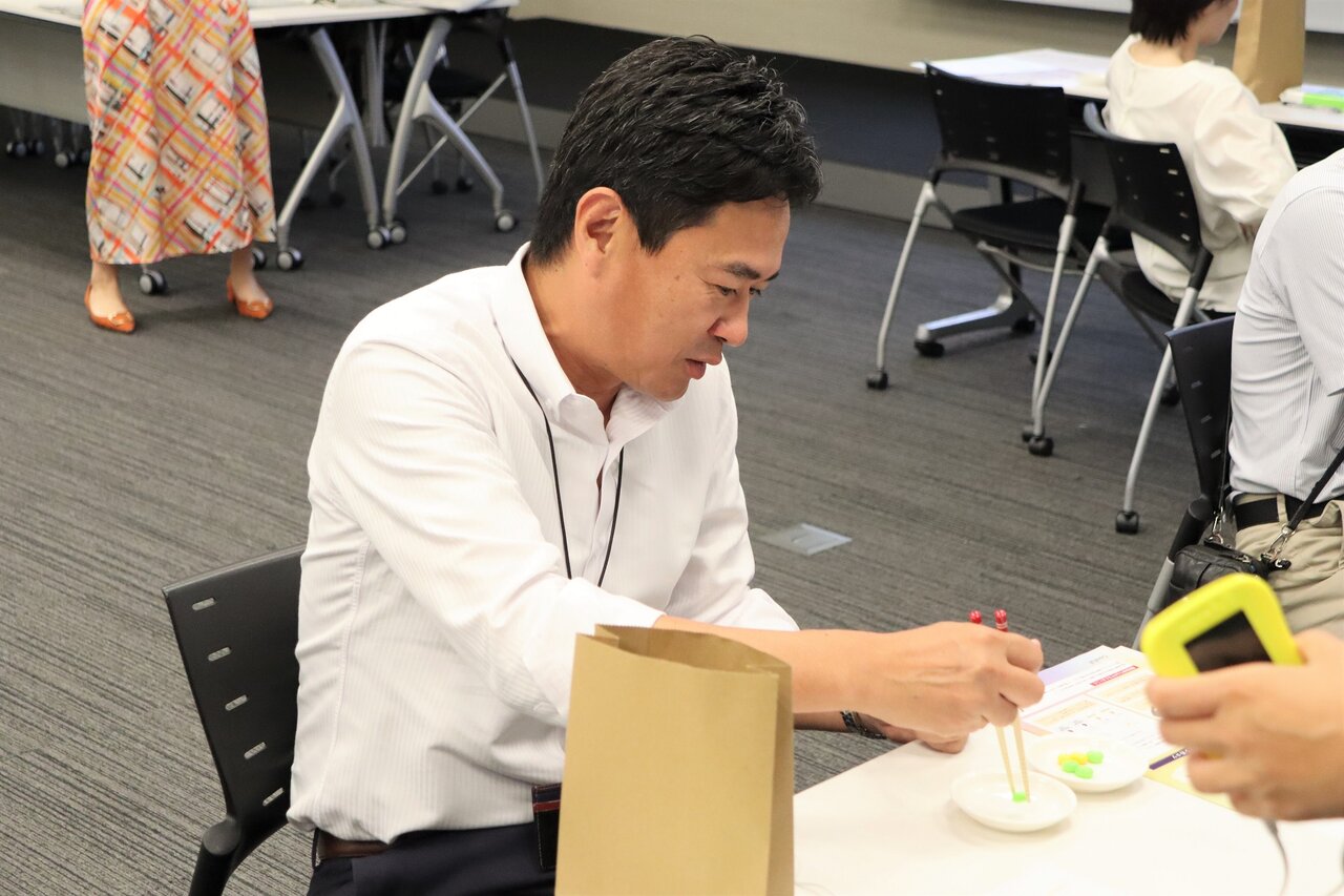 その後は、生理痛がどれだけ仕事に影響しているかを知る目的で、箸で小さな豆を隣のお皿に移す作業をしてもらったよ。志田さんは「痛みがあると作業に集中できないな」と一言。決して難しくない作業だけど、生理による痛みが集中力や正確性に影響することを、身をもって知ることができるね。