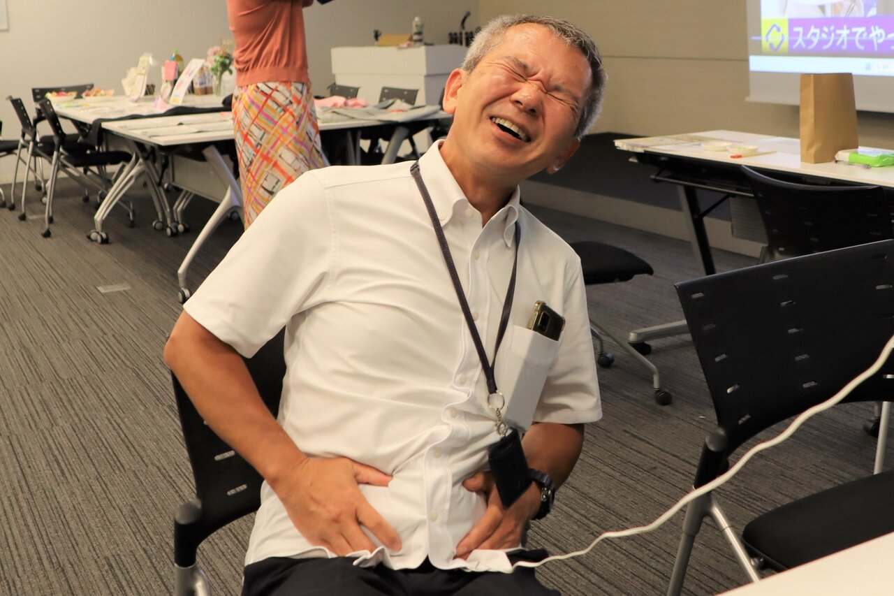 志田さんの他にも、当日はさまざまな参加者に生理痛を体験してもらったよ。まずはこのイベントを主催した、(株)ブリヂストン HRXカルチャーチェンジ・DE&I推進部長の本間さん。本間さんは過去に開催したイベントでも体験したことがあったそうなんだけど、「何度やっても痛いね…」とのこと。表情から痛さが伝わってくるね。本間さんはその後「マネジメントをする立場として、改めて部下への配慮について見直すきっかけになりました」とその場での気付きについて教えてくれたよ。