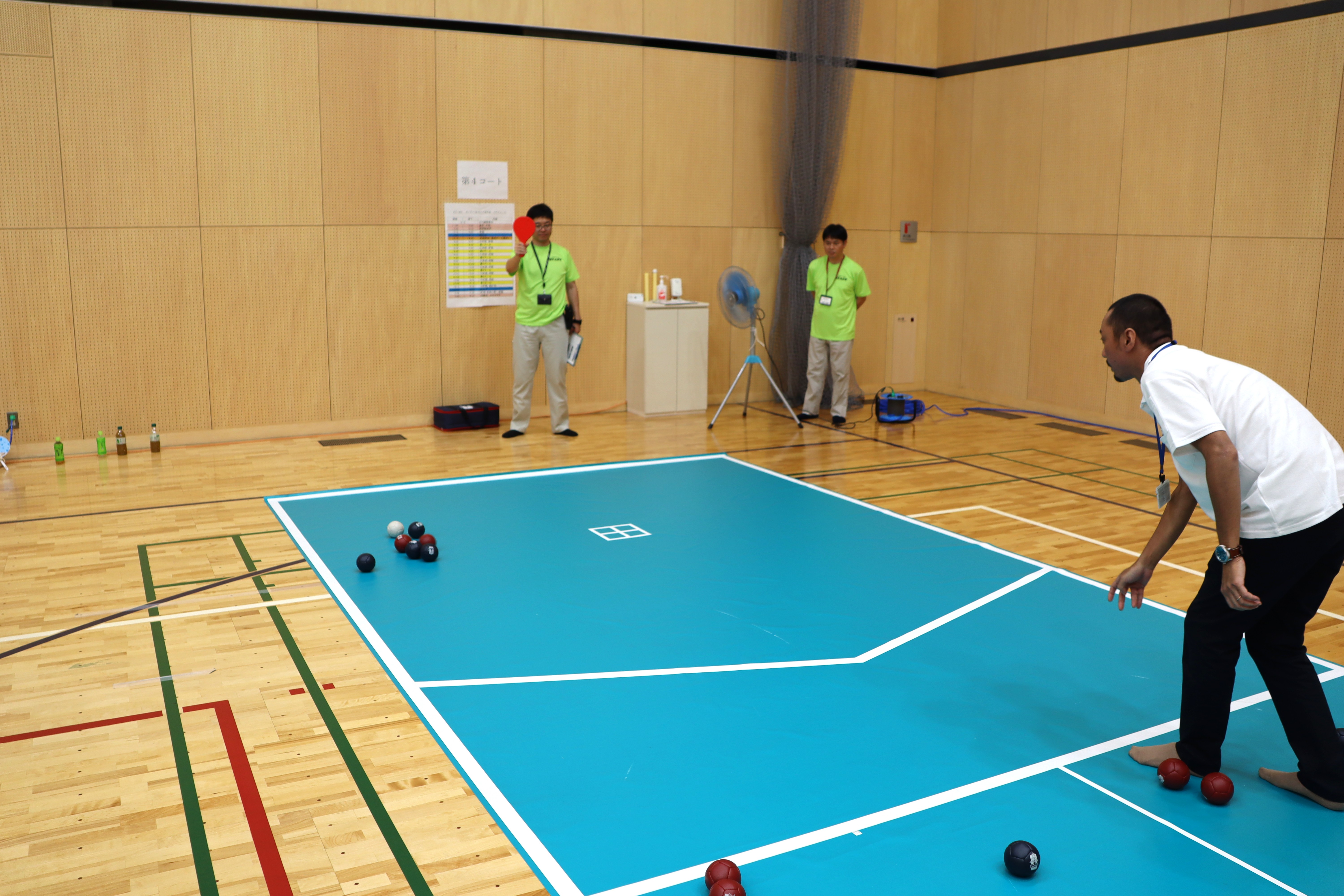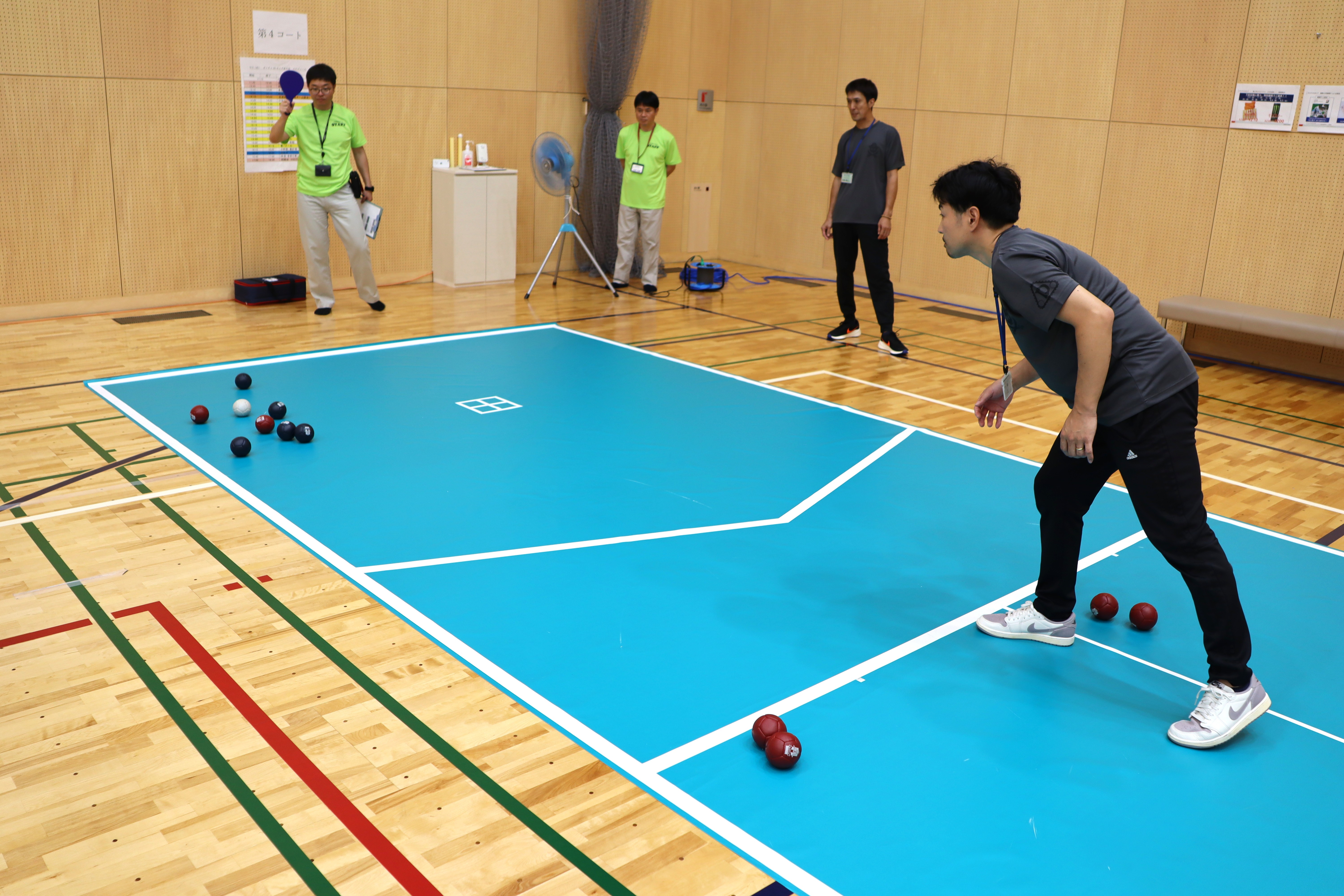 「ボッチャ」は、イタリア語でボールを意味する単語。赤または青のカラーボールをそれぞれ6球ずつ投げたり、転がしたりして、白の的球(ジャックボール)にいかに近付けられるかを競う競技です。パラリンピックでは、1988年ソウル大会から正式種目となっています。年齢、性別、障害の有無に関わらず誰でも参加できるのが特徴で、組織一体となって活動したいという目的とも一致することから、開催されることとなりました。