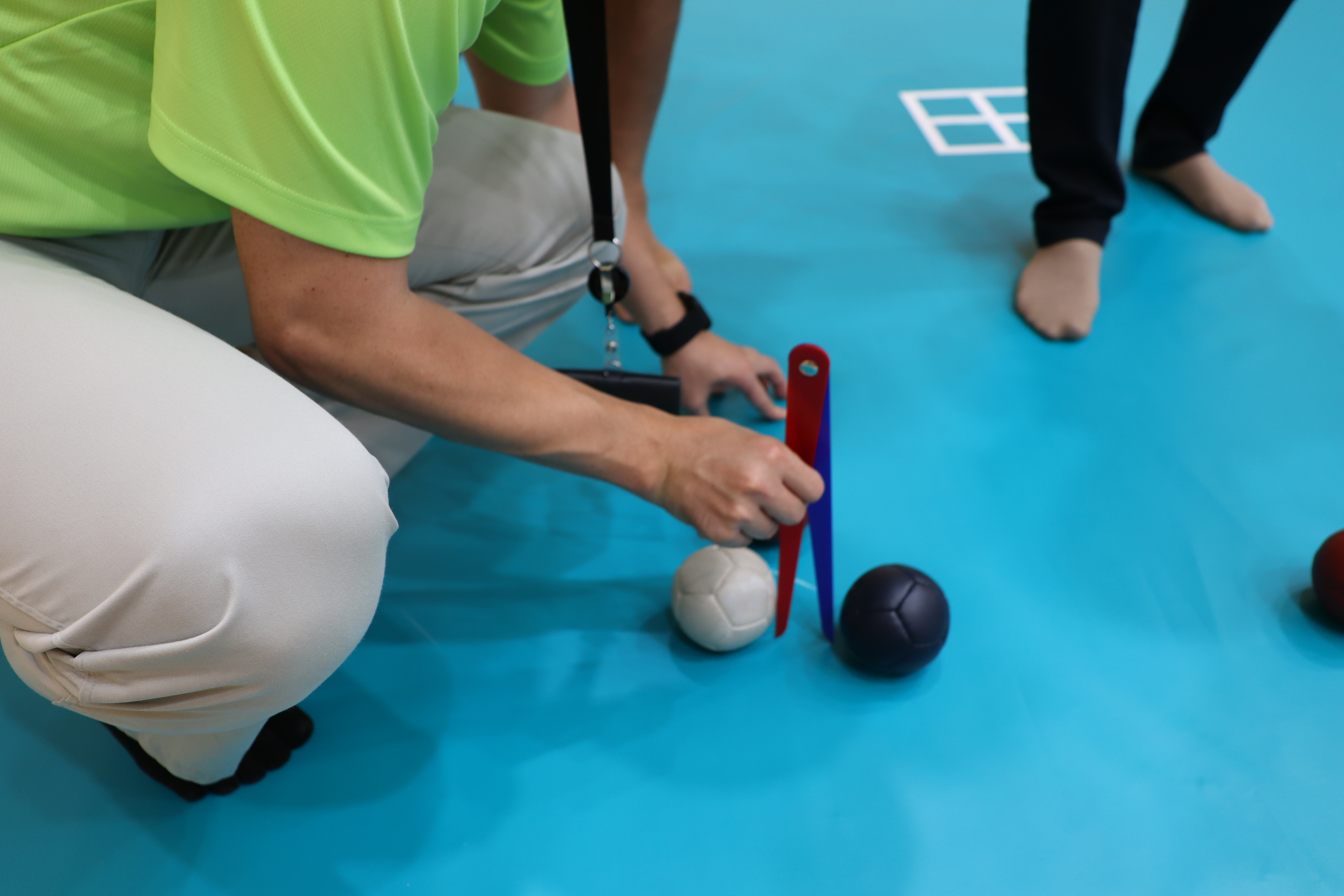試合では、先攻がジャックボールを投げた後、両チームがカラーボールを1球ずつ投げます。1球目がジャックボールから遠かったチームから投げていき、相手のカラーボールよりもジャックボールに近付いたら相手チームに交代。全6球を投げ終えて最終的にどちらのボールがジャックボールに近いかを競います。