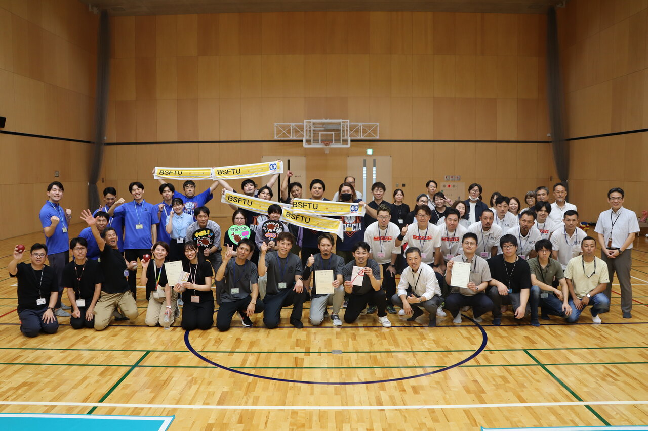 この大会は、組織内の一体感を高めるとともに、コロナ禍で弱まった人的ネットワークを再構築する目的で、今年初めて開催されました。横浜・熊本・関工場や化工品技術センターに加えて、ブリヂストン化工品ジャパン(株)・ブリヂストンフローテック(株)・ブリヂストンスポーツ(株)から全7チーム、応援も含めて約90人が参加しました。