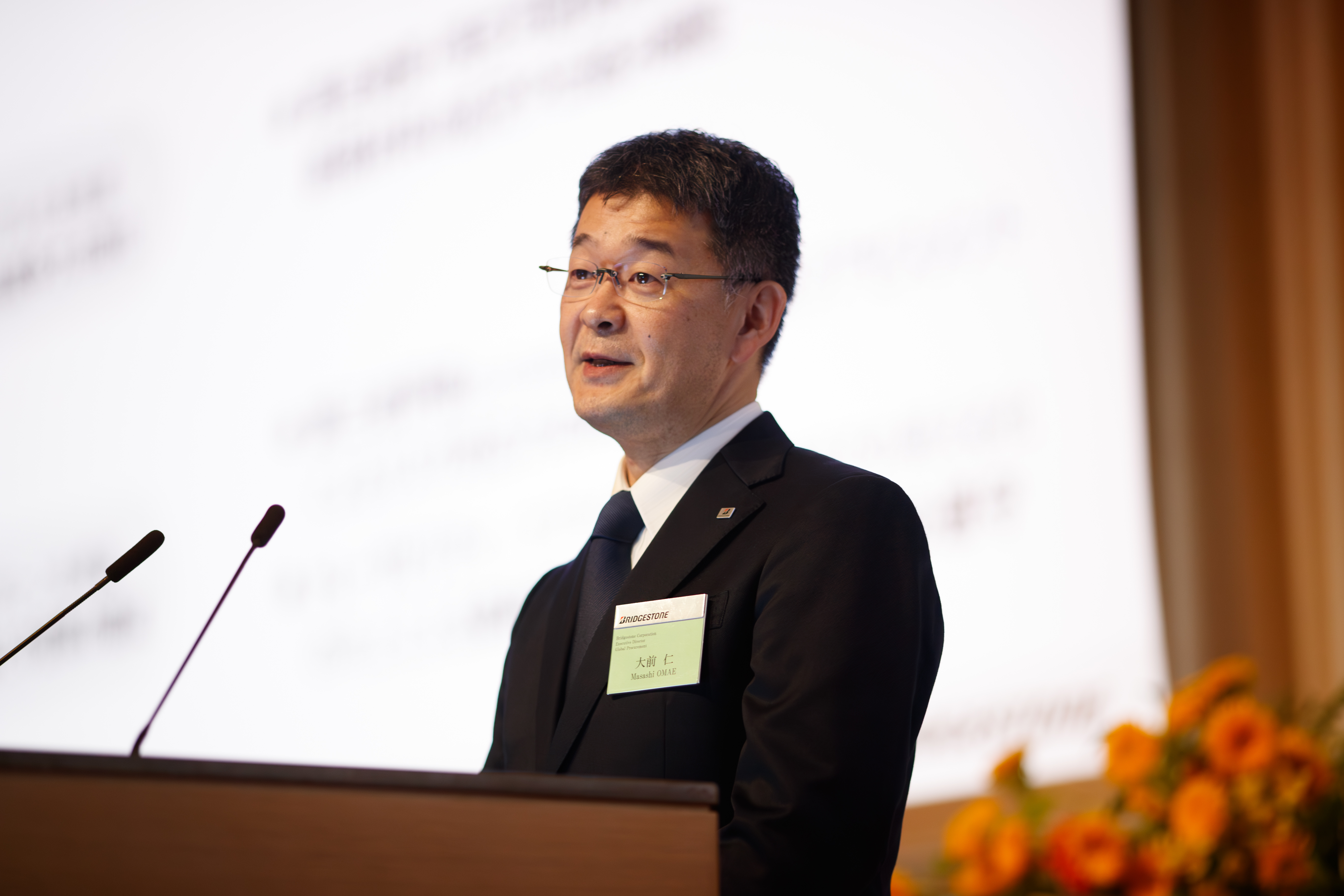 続いて、グローバル調達・内製事業統括部門長 大前さんからは、緊急危機対策年である2025年を皆様と共に勝ち残り、2026年以降の真の次のステージにおける価値創造に向けてパートナーの皆様と共に取り組みたい3つの軸、「サプライチェーン全体の基盤強化」「No.1競争力の実現」「サステナビリティ課題への取り組み」についてご説明し、ブリヂストンとパートナーの皆様が両輪となった「WIN-WINでフェアなパートナーシップ」をベースに、お互いの強みをつなぎ、掛け合わせることで、競争力をさらに高めていきたいとのメッセージをお伝えしました。