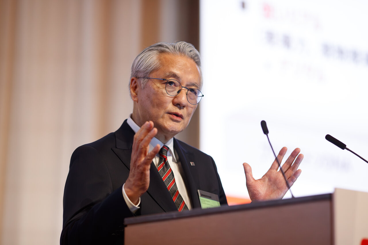 まず、パートナーの皆様と共に歩んできた過去を振り返り、創業の地・久留米に始まり、日本各地、アジア、米国、欧州へとパートナーの皆様の輪が広がり、そのサポートのもとに、共に成長・発展を遂げることができたことについて感謝を述べられました。