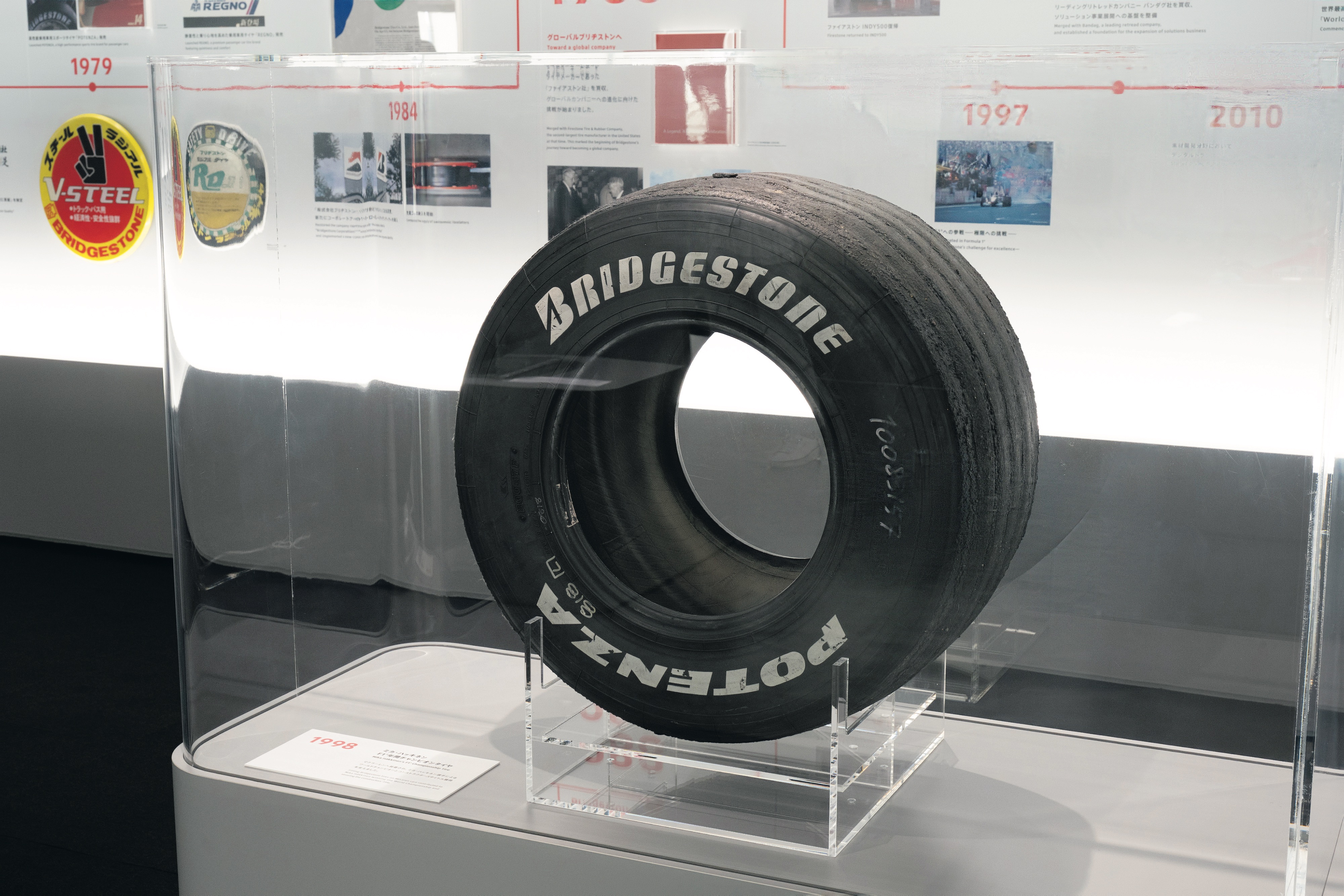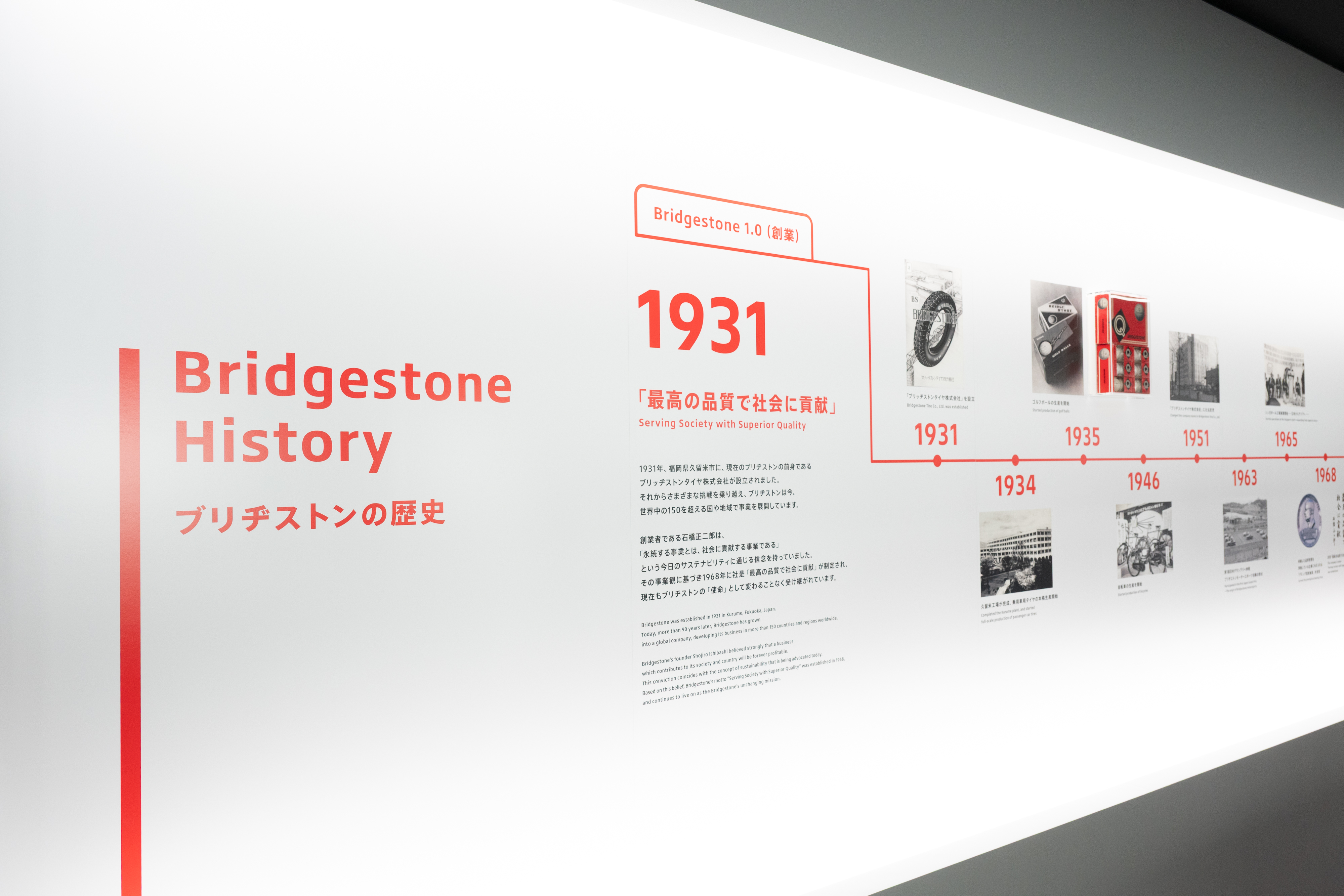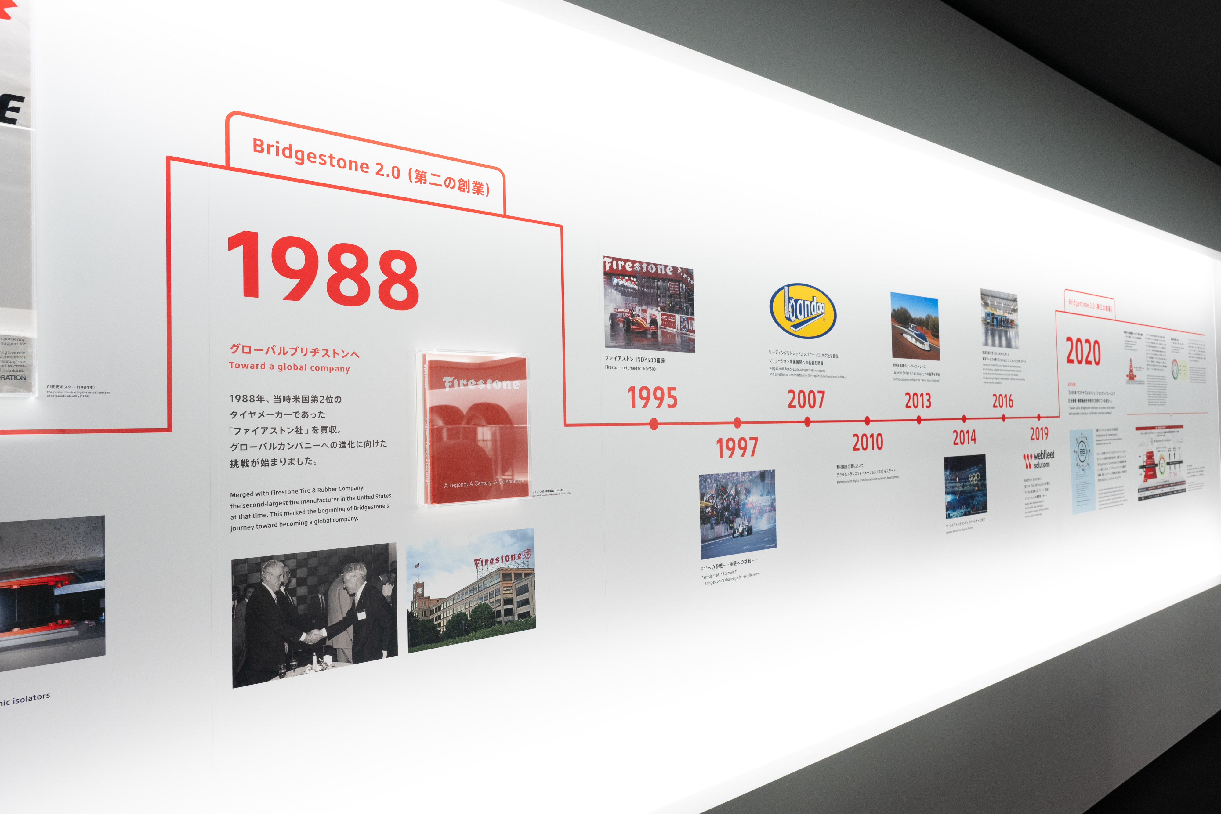 Bridgestone 1.0から3.0までの歴史を、過去の物語る史料と一緒に展示しています。