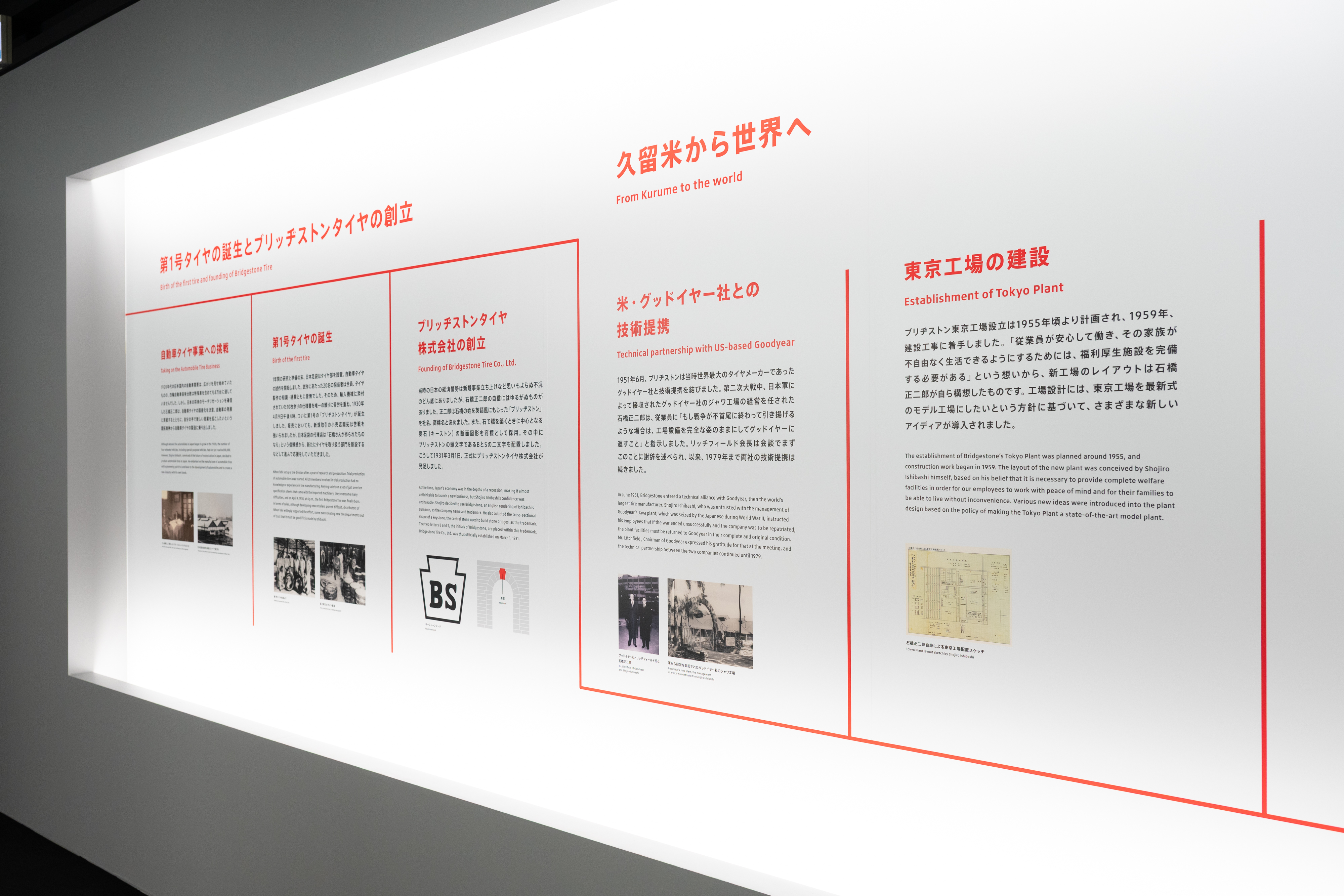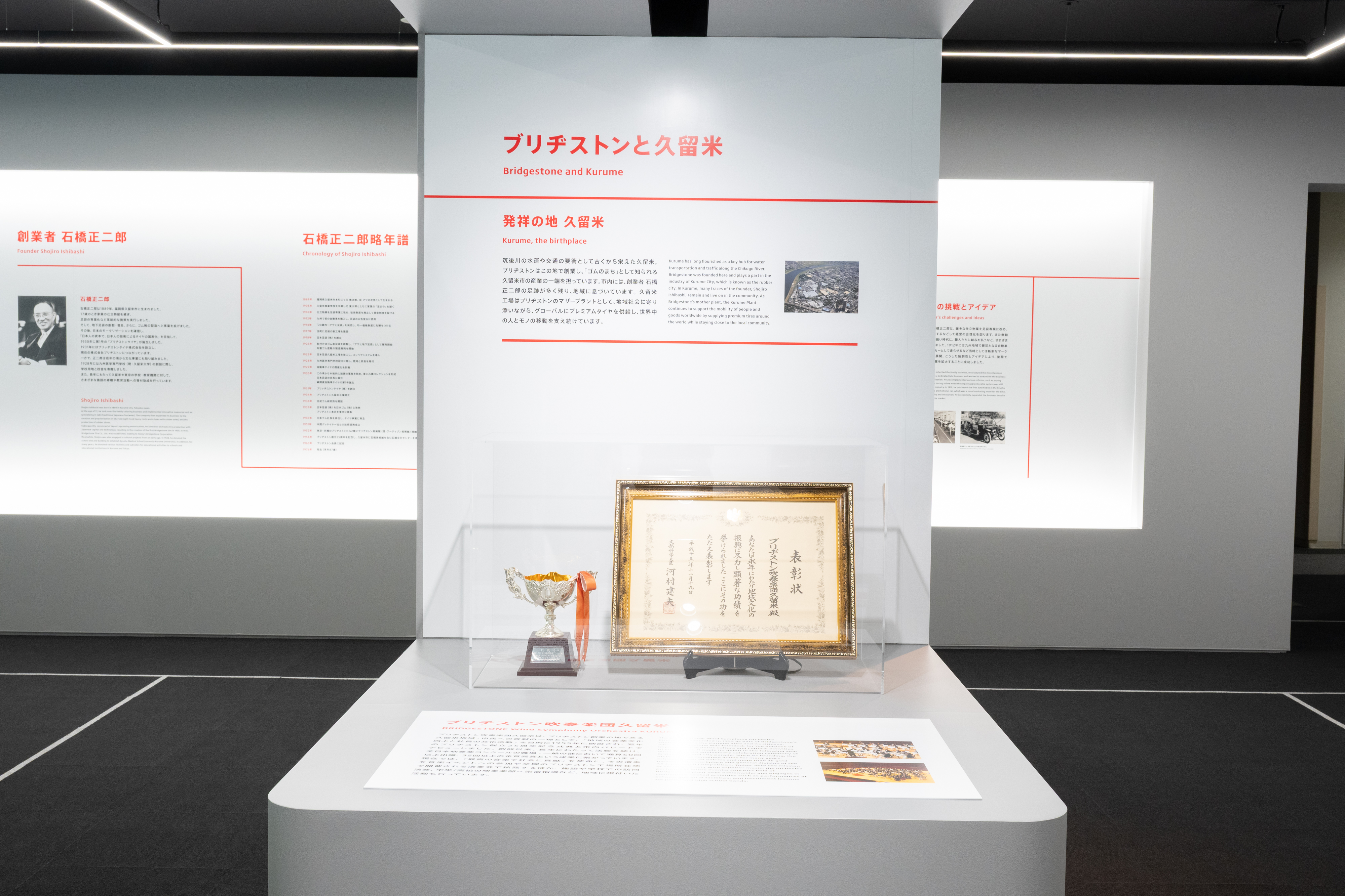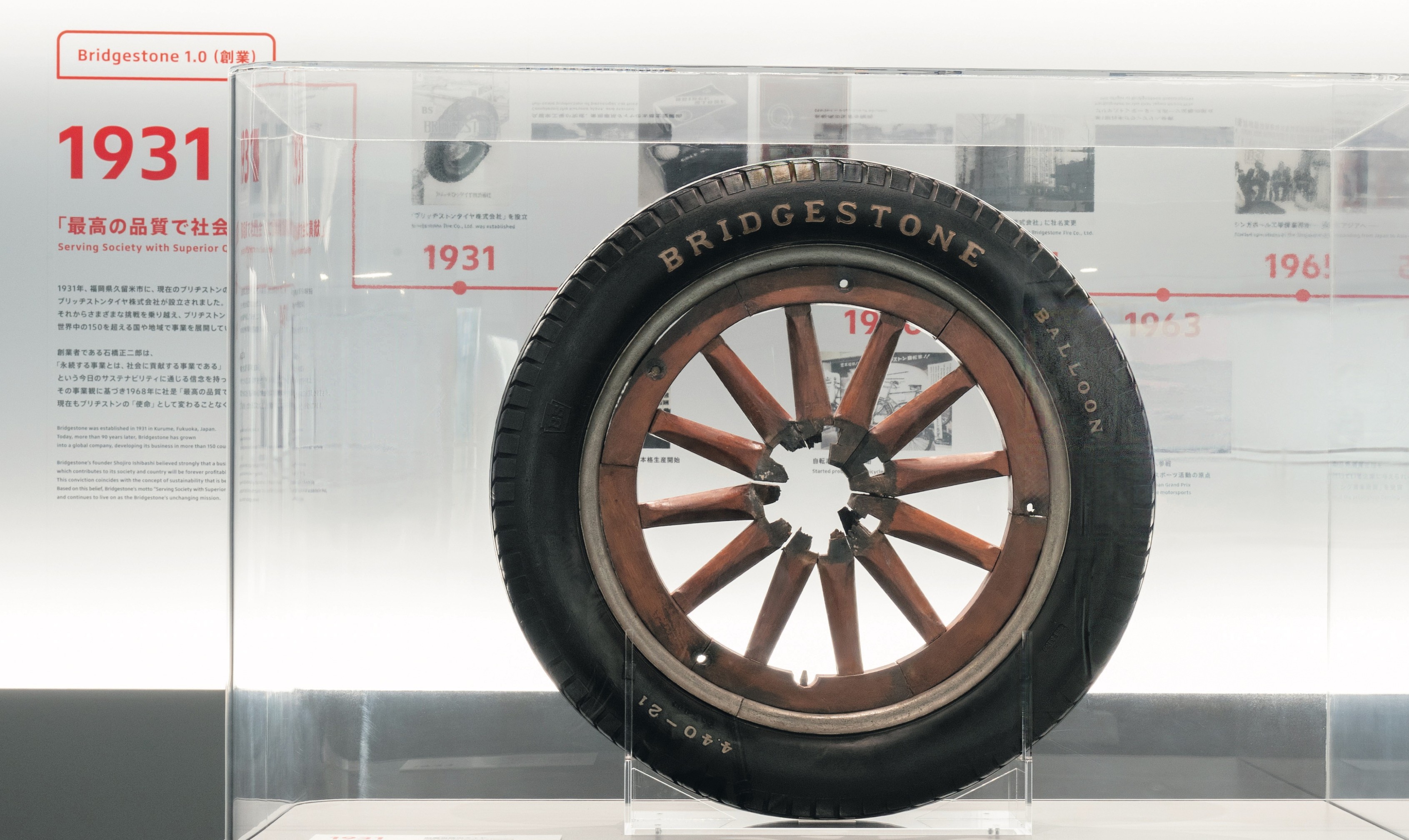 Bridgestone 1.0から3.0までの歴史を、過去の物語る史料と一緒に展示しています。