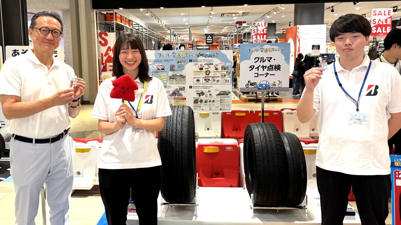 乗用車用タイヤ、二輪車用タイヤ、自転車と広く事業を行っているブリヂストングループの強みを生かし、(株)ブリヂストン、ブリヂストンタイヤソリューションジャパン(株)(以下、BTSJ)、ブリヂストンサイクル(株)が一体となり、交通安全の啓発を行いました。