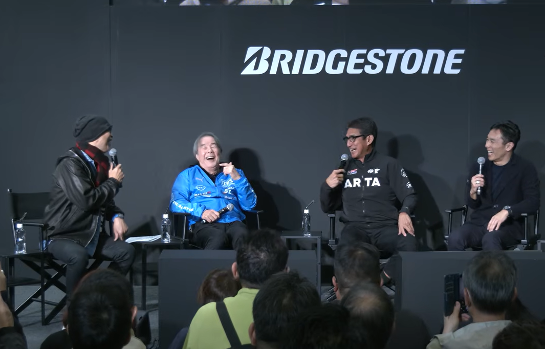 初日に実施したプレスカンファレンスでは、(株)ブリヂストン 常務役員 製品開発管掌 草野 亜希夫さんのプレゼンで、「RE-71RZ」をお披露目。その後のトークセッションには、開発を担当したドライバーの佐々木 雅弘さんや立川 祐路さん、(株)ブリヂストン PS製品企画第1課の加藤 泰聖さん、ブリヂストンタイヤソリューションジャパン(株) 消費財商品企画部の伊藤 航さんが登壇。開発を進める上で目指したことや苦労したこと、新しいタイヤの進化した特徴について語り合いました。