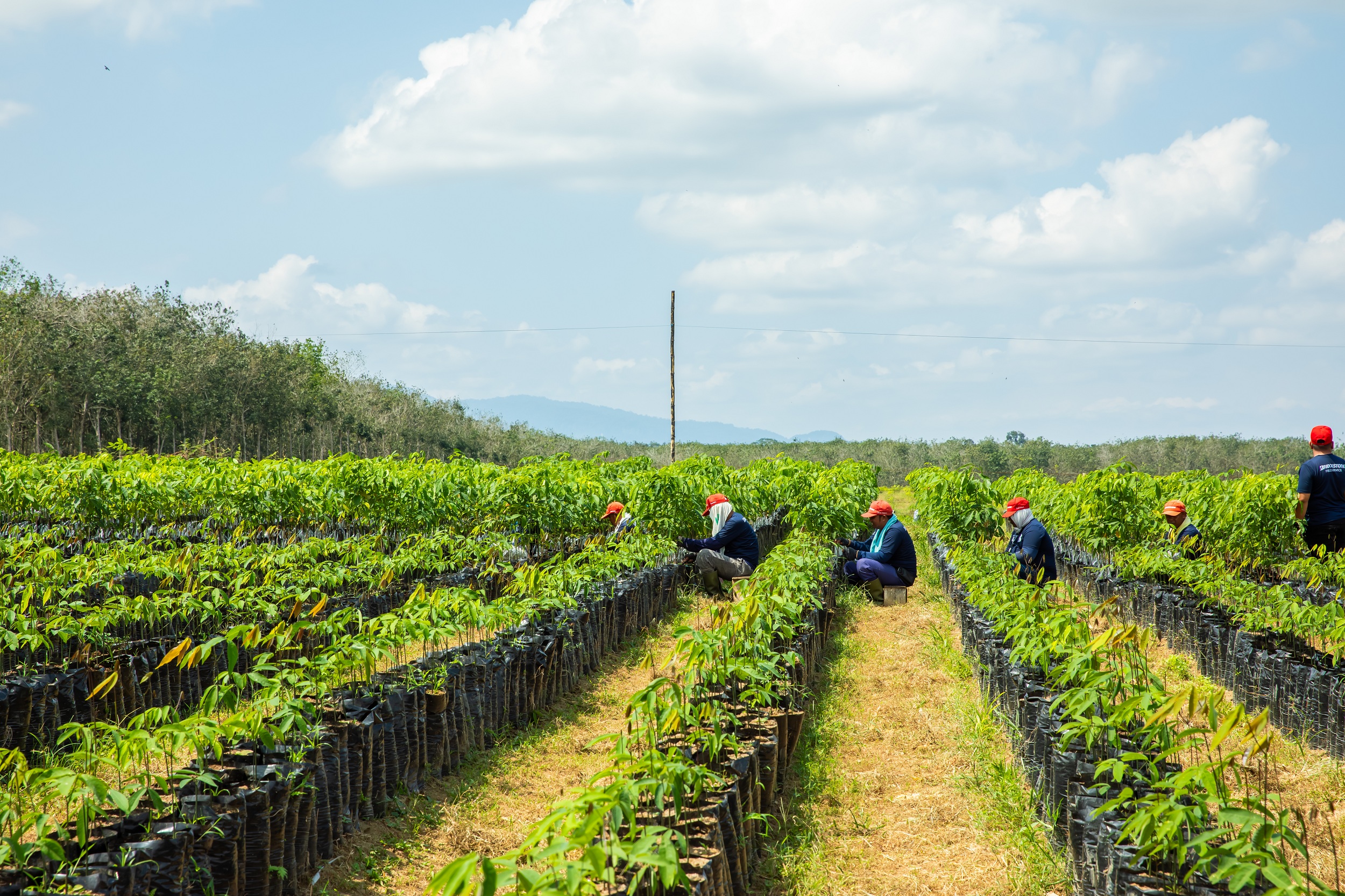 パラゴムノキは、植えた直後から樹液が採れるわけではなく、長い時間をかけ育てることで、初めて樹液が採取できる農作物です。苗を育て、農園に植え、時間をかけて木を成長させる——この積み重ねが、安定した品質と収穫を支えています。