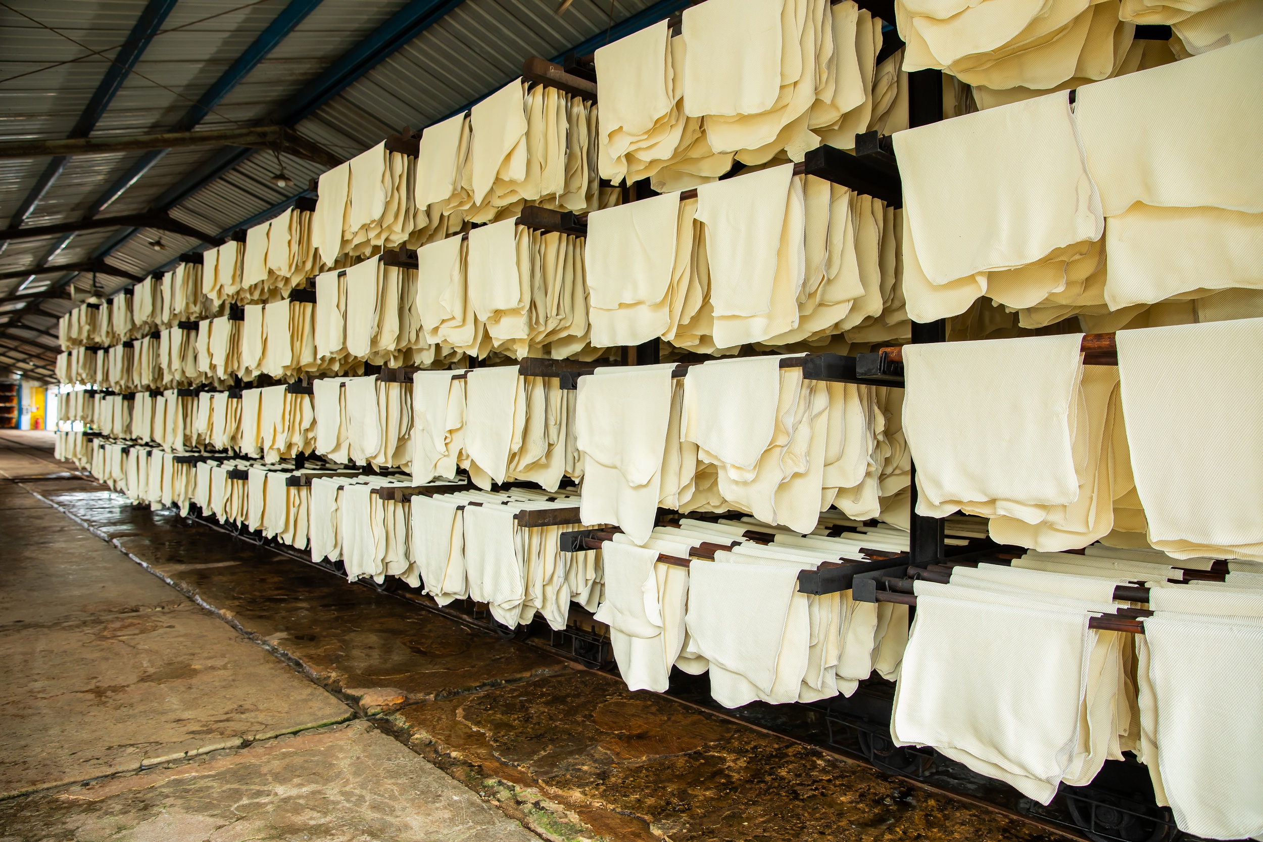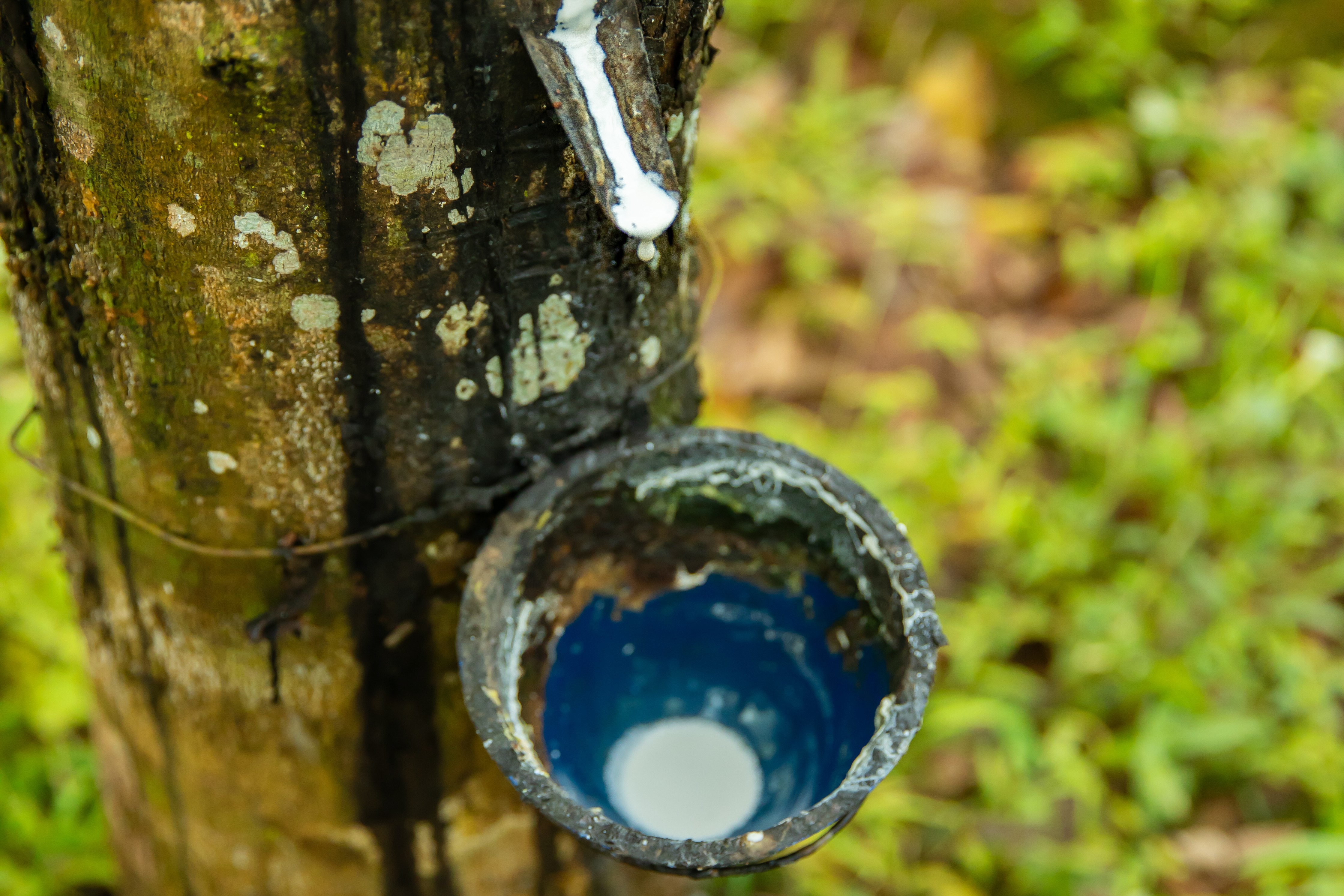 ゴムの木から樹液(以下、ラテックス)を採取するためには、日々、1本1本の木と向き合うことが必要です。気候や病害といったさまざまな要因に配慮しながら適切に管理することではじめて、ラテックスを採取することができます。その後、用途に応じた加工を経て、初めてさまざまな製品の原材料として使えるようになるのです。ここでは、ラテックスが採取されてからの加工プロセスをご紹介します。