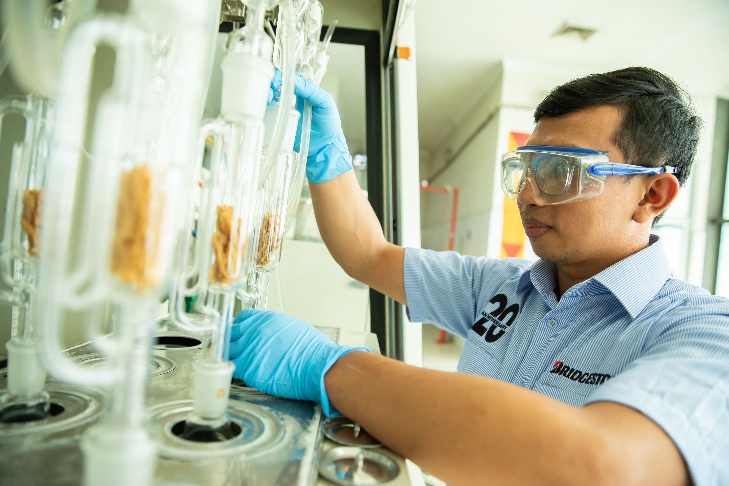 藤野さん その点、ブリヂストンは自社農園を複数運営していることに大きな強みがあります。インドネシアのスマトラ島にある農園(PT. Bridgestone Sumatra Rubber Estate、BSRE)には研究施設もあります。現地で研究を進める仲間たちと一緒に、さまざまな議論を行い、試行錯誤を重ねながら研究開発を進めています。